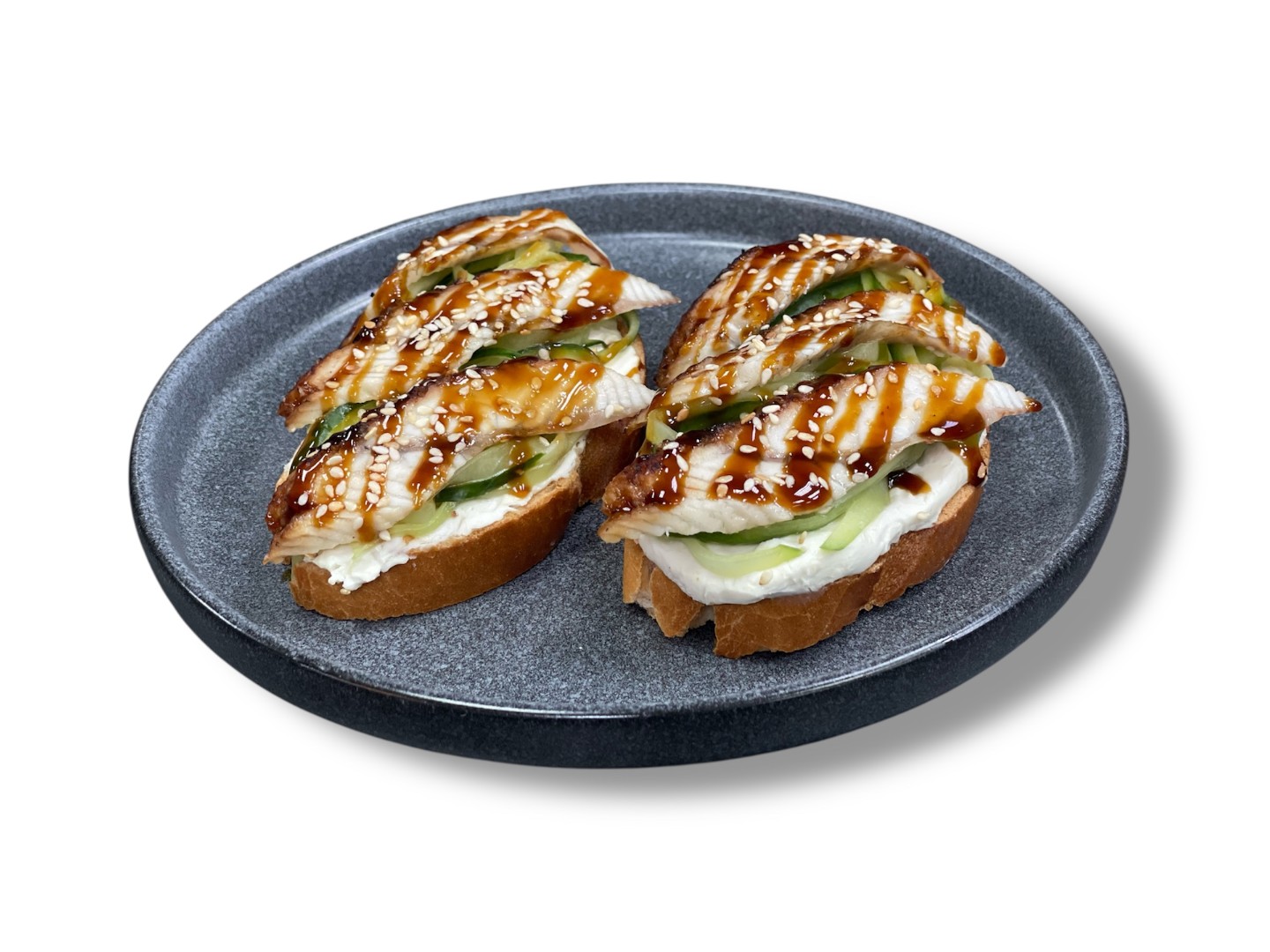 две вкуснейшие брускетты с копченным угрём под фирменным соусом